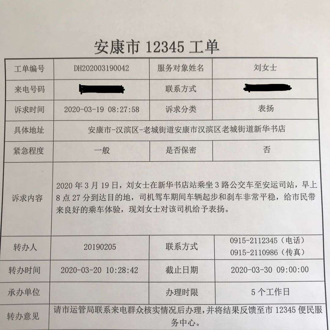 3路公交途經(jīng)地區(qū)路況復(fù)雜,客流量大,但駕駛員喻祥根師傅在當(dāng)班期間,用自己嫻熟的技術(shù)和優(yōu)質(zhì)的服務(wù)為乘客帶去了愉快的乘車體驗。為此乘客劉女士特通過12345服務(wù)平臺表達自己的敬意。